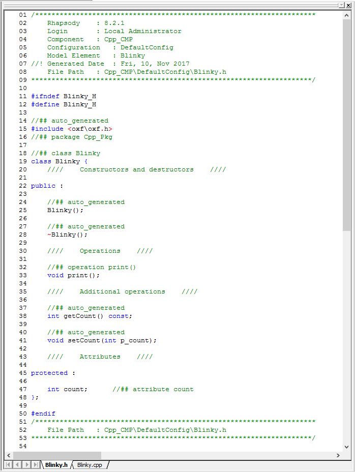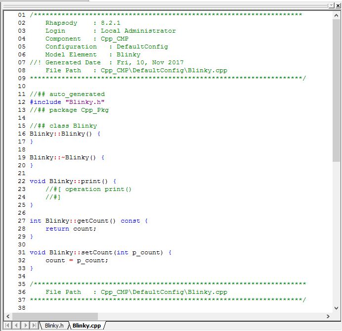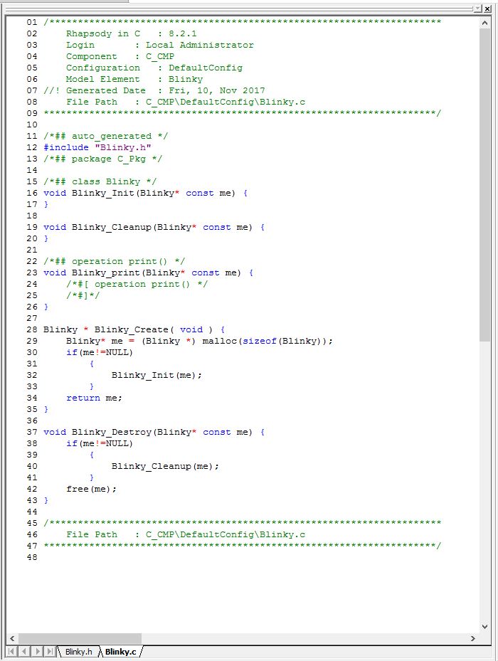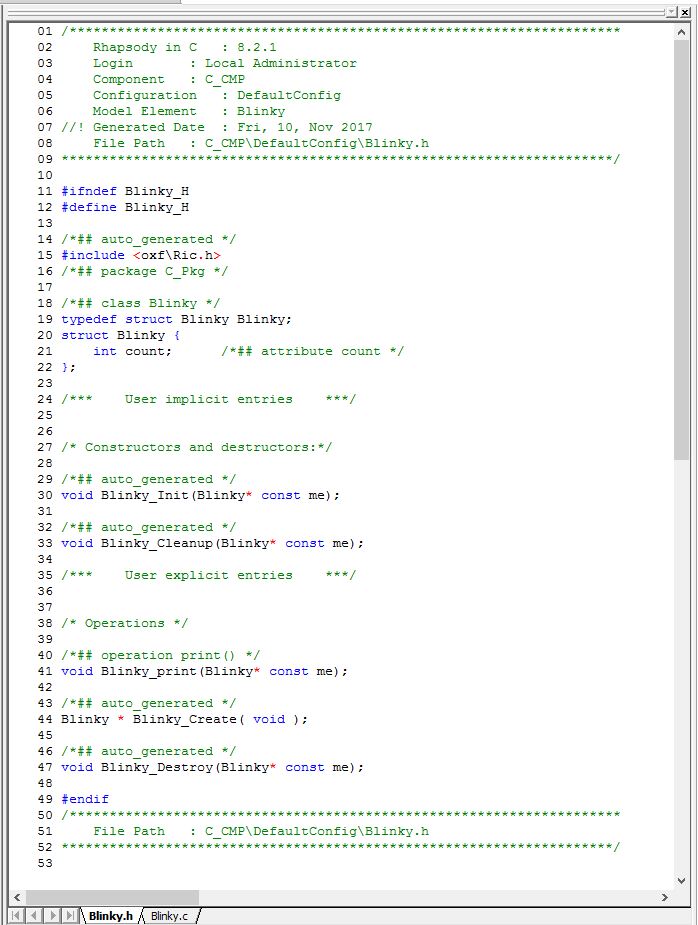 The Object orientation in C is done by using a struct to mimic a class. (Private members are not really private there, unfortunately.But in Rhapsody, the get and set methods are used to implement private, public and (only in ‘C++) protected.